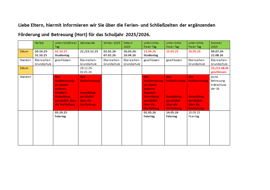 Aus Gründen der besseren Planung des Tages bitten wir Sie darum, die Kinder bis spätestens 9.00 Uhr in die Ferienbetreuung zu schicken.