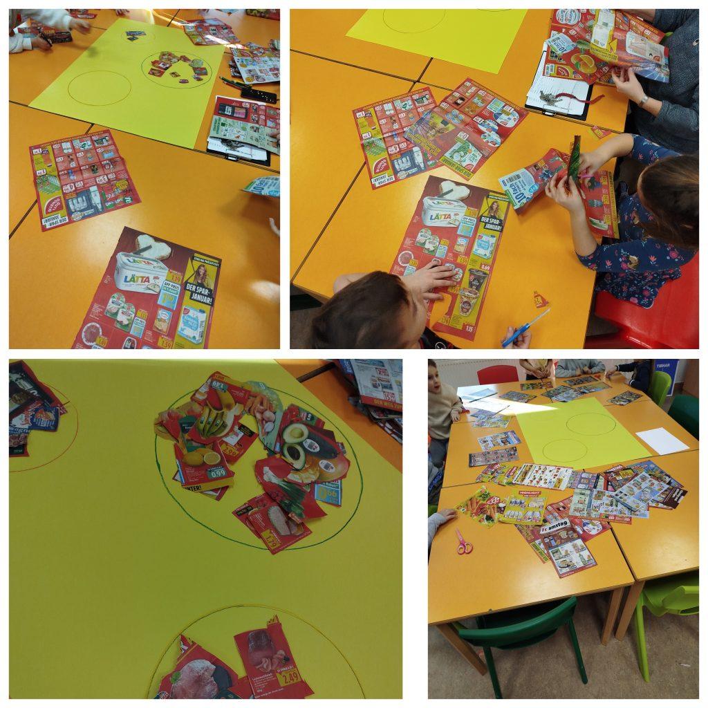 Die Klasse 1a sprach, gemeinsam mit ihrer Erzieherin, Frau Holst, über gesunde Ernährung. Gemeinsam wurden Werbeprospekte durchstöbert, um nach gesunden und ungesunden Lebensmitteln zu suchen. Es war schön zu sehen, dass viele Kinder diese Lebensmittel bereits gut benennen konnten. Im Anschluss wurde alles ausgeschnitten und in drei Gruppen auf ein Plakat geklebt. Die Kinder können nun auch mit den Eltern gemeinsam besprechen, wie eine Brotdose mit gesunden Lebensmitteln befüllt werden kann.